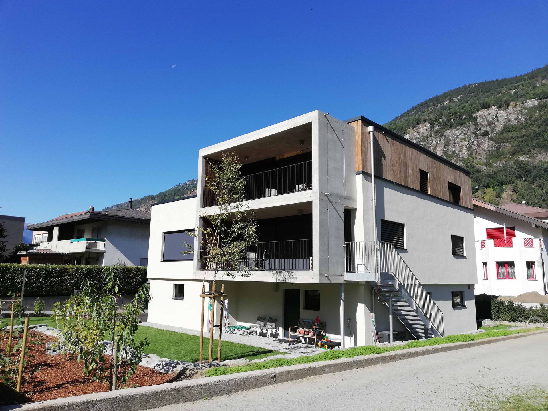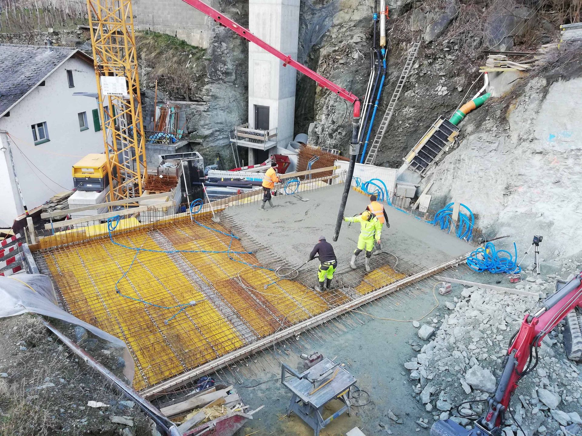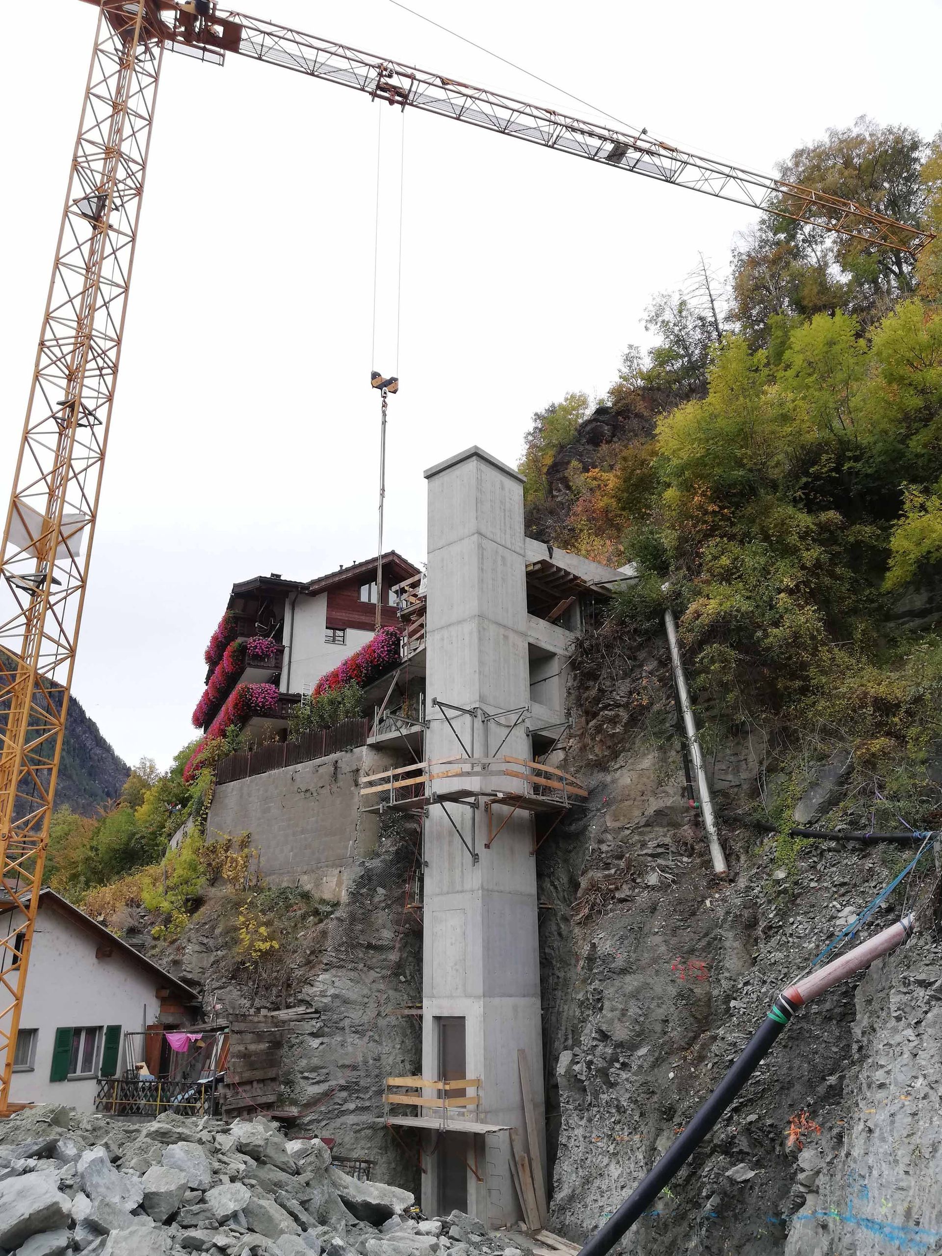 Neubau Personenlift zu bestehendem Wohnhaus sowie Neubau Parkhalle. Aushub bestand aus Felsen und musste durch Spitzen und Sprengen entfernt werden.